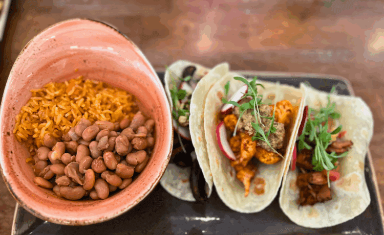 Finding places where vegetarian options aren’t merely a selection of side dishes always feels like a win for me. I opted for the taco trio with each of the vegetarian selections: Jackfruit Al Pastor, Charred Cauliflower, and Mushrooms. Each featured its own salsa.
